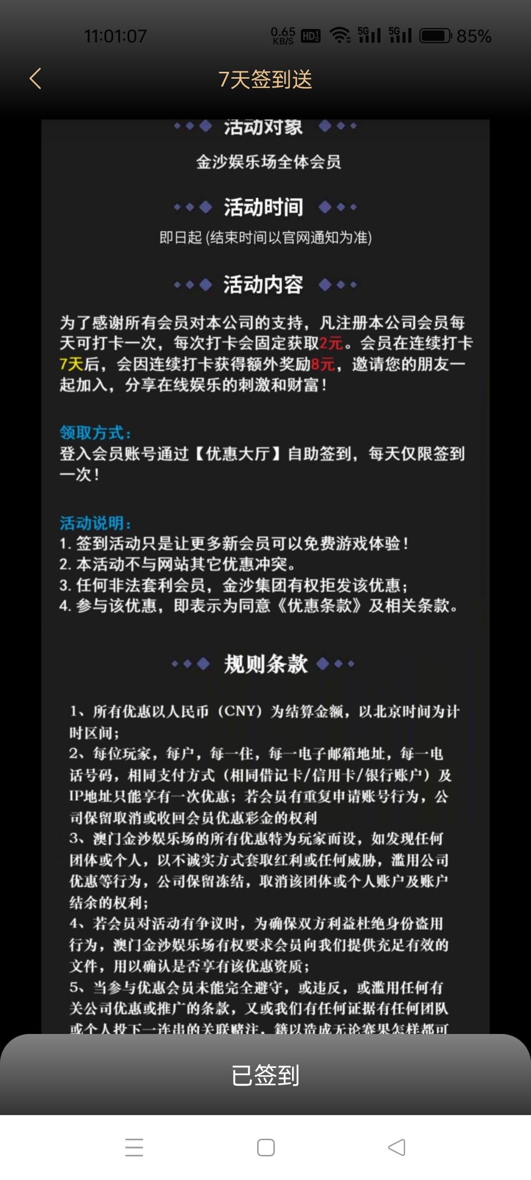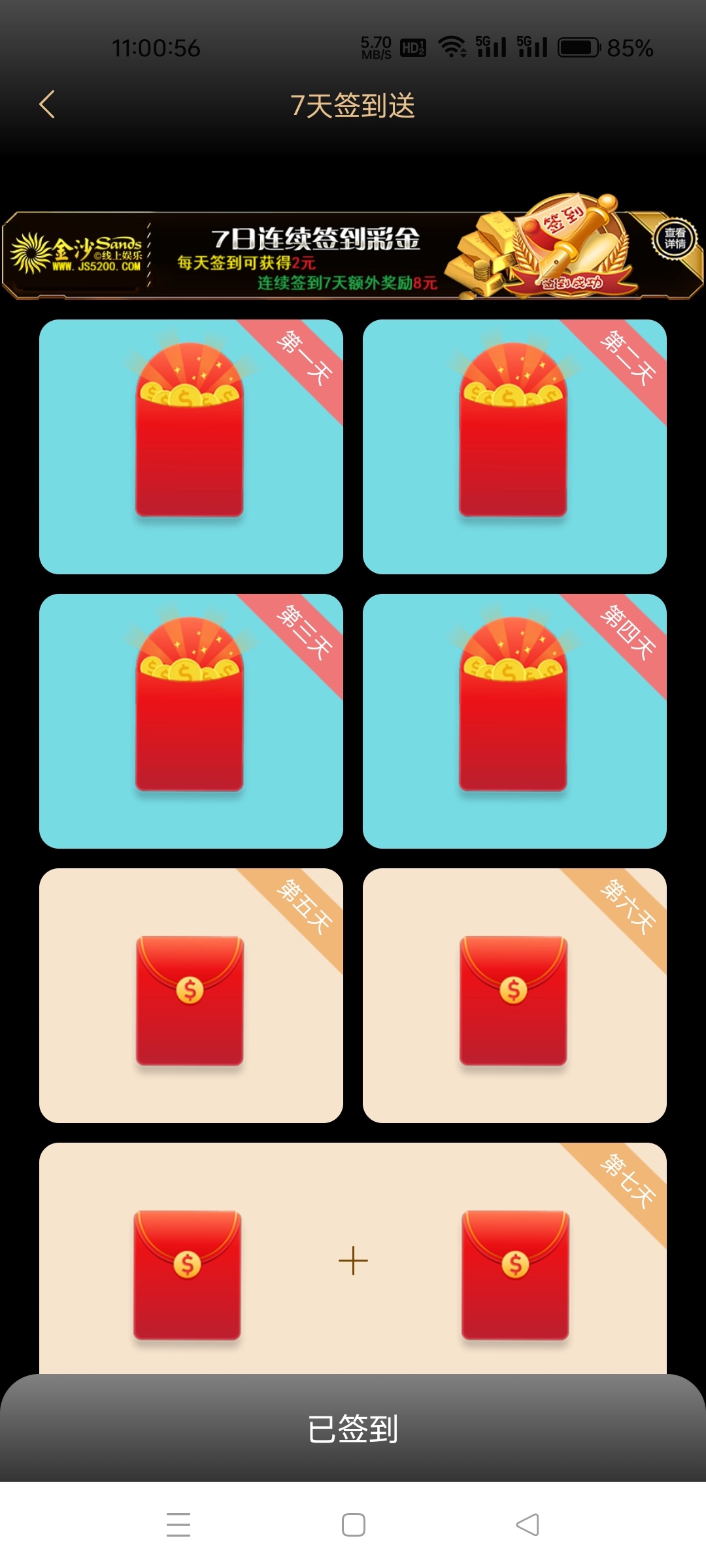 金沙娱乐场每日签到可以2元,连续签到7天额外领8元,一共能领22元不要充值我暂时没打出来,提款你们自测还是那句话不要充值出款自测,提款的老哥晒晒图,最近白嫖少的很有这一点总比没有强,还有那个下载app彩金容易多ip我没有让你们搞啊。